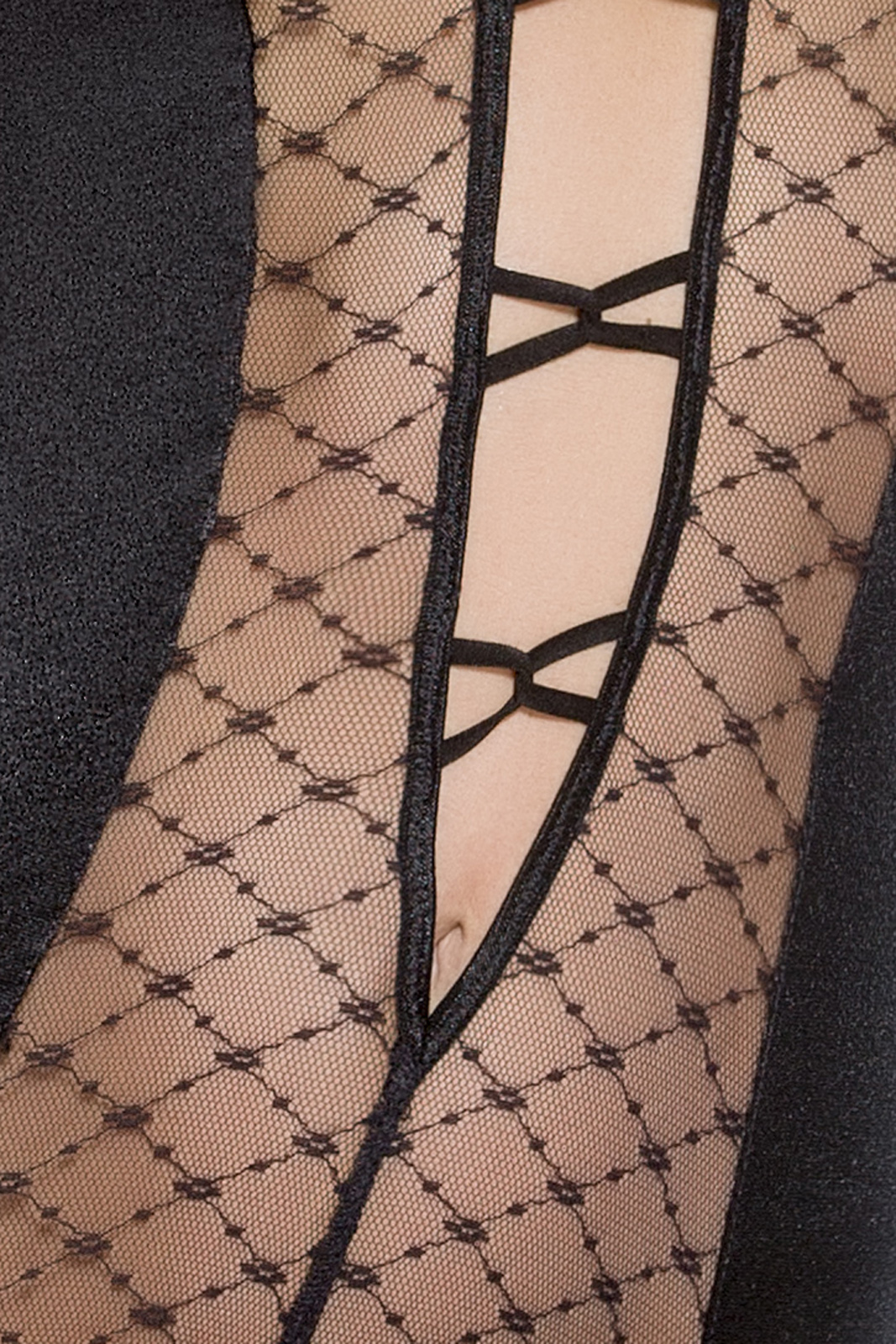 Eleganckie body wykonane z czarnej elastycznej satyny wykończone delikatnym plenem