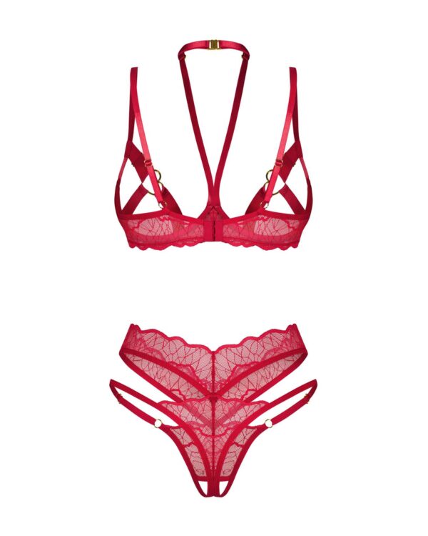 Cupide Desir komplet 2-częściowy otwartyUwodzicielski zestaw czerwonej bielizny – biustonosz z odsłoniętymi miseczkami i otwarte stringi