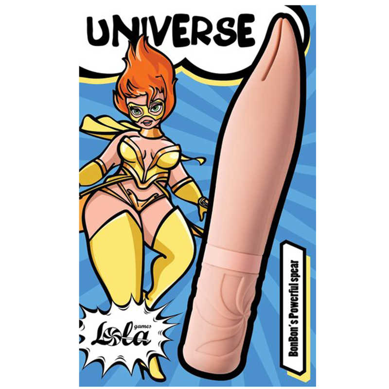 Mały wibrator w kolorze cielistym ma ciekawy kształt głowy, który przypomina rozwidlony grot włóczni