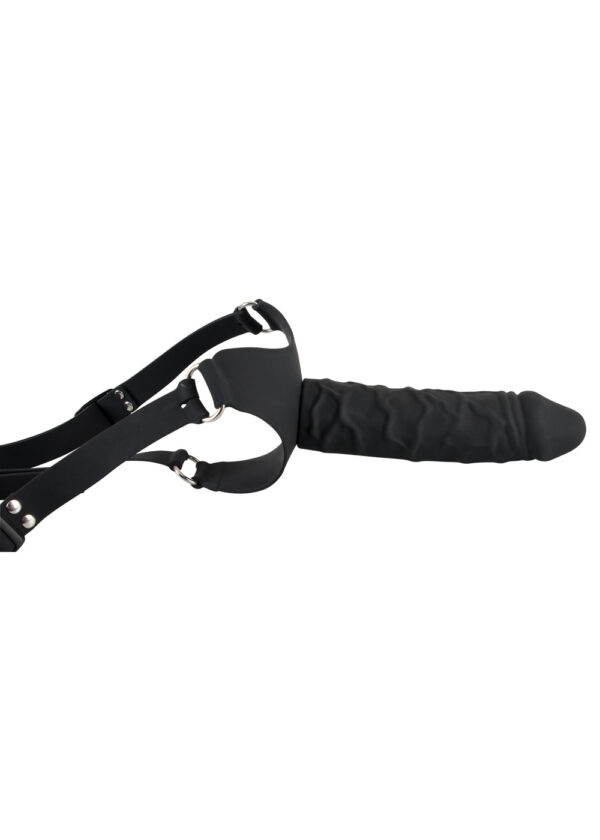 Masz ochotę na cudowną zamianę ról?!Ten czarny, silikonowy strap-on od You2Toys wyróżnia się solidnym dildo z wyraźną żołędzią i żyłkami